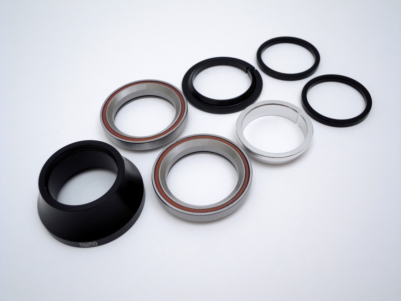 BSD のロゴが入ったトップカバー15mm と3mm スペーサー2枚、高品質のシールドベアリングを使用しているインテグラルヘッドセットです!