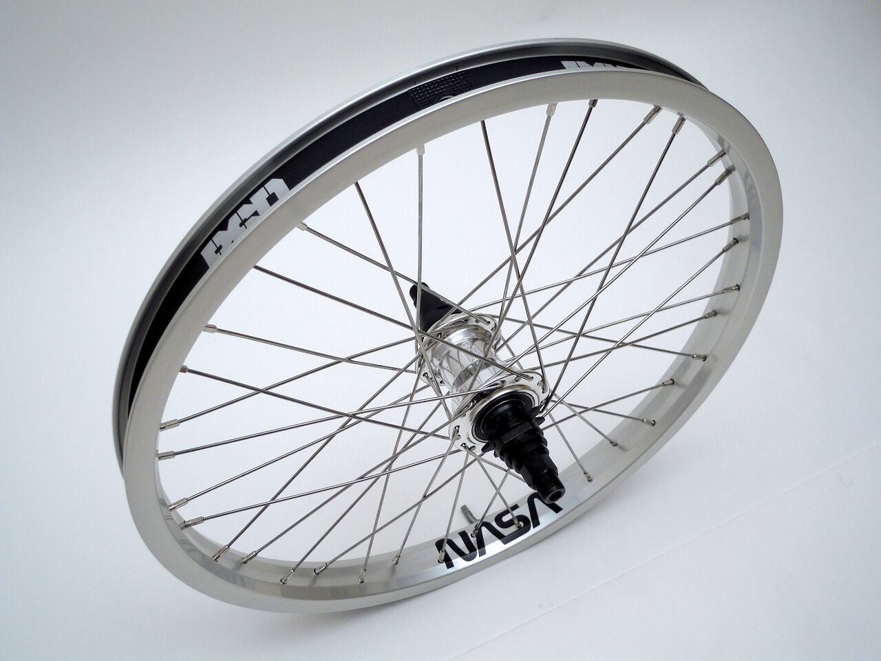 ハブはBSD West Coaster Hub (フリーコースターハブ)、スポークはステンレス製のブラック、リムはBSD のダブルウォールNASA Rim で組まれた高級ホィール!左右のプラスチック製のハブガードも付属してます!
